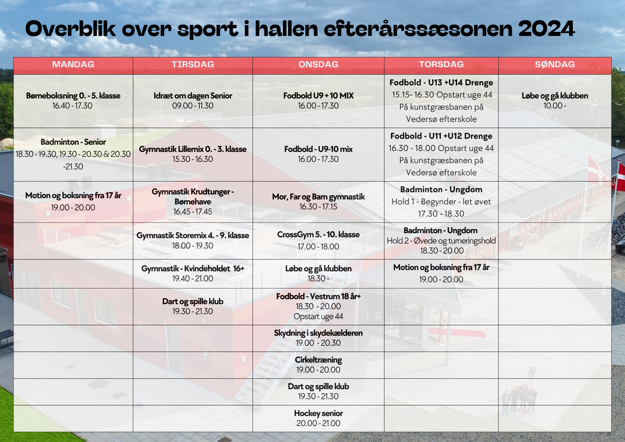 Om du er til boldsport, fjerbolde, spring, rytme, fitness eller noget helt andet, så kom forbi. Der er helt sikkert også noget for dig.